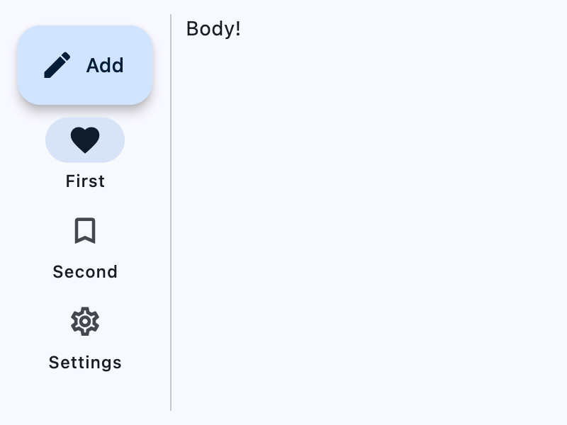 ft.NavigationRailDestination(icon=ft.Icon(ft.Icons.ADD),label="Add"),